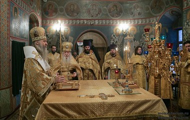 Накануне в Сергиевском храме обители было совершено всенощное бдение с акафистом святителю Петру.