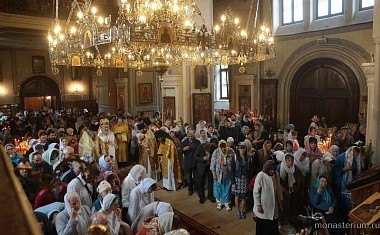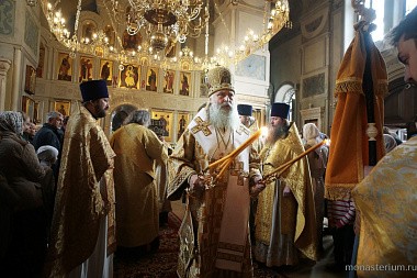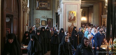 В этот праздничный день богослужение в храме Всех святых Алексеевской обители возглавил председатель синодального отдела по монастырям и монашеству, наместник Свято-Троицкой Сергиевой лавры архиепископ Сергиево-Посадский Феогност.