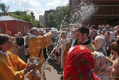 По окончании богослужения состоялся праздничный крестный ход с Крестом и хоругвями. Владыка Феогност, настоятельница Алексеевской обители игумения Ксения с сестрами, духовенство, прихожане обители прошли с пением праздничных тропарей по дорожке вдоль монастырских стен.