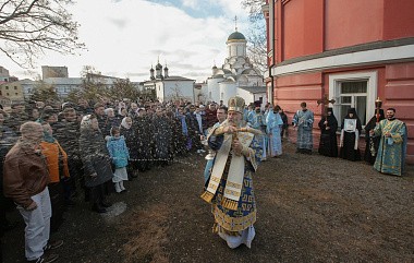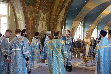 Его Высокопреосвященству сослужили заместитель председателя Синодального отдела по монастырям и монашеству архимандрит Стефан (Тараканов) и духовенство обители.