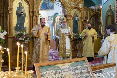 Его Высокопреосвященству сослужили клирики монастыря и других храмов Санкт-Петербурга.