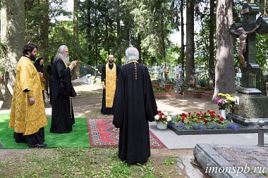 После праздничной трапезы владыка Феогност отправился на подворье монастыря в дер. Вартемяги, где на монастырском кладбище отслужил панихиду по приснопоминаемой схиигумении Серафиме (Волошиной) и новопреставленному протоирею Георгию Очкалову.