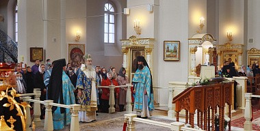 По окончании молебна архиепископ Феогност поздравил игумению Екатерину с сестрами с престольным праздником и передал благословение Святейшего Патриарха Московского и всея Руси Кирилла.