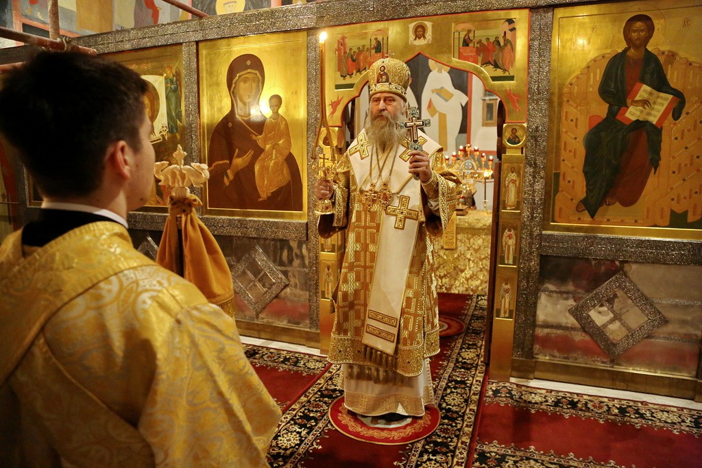 По окончании богослужения владыка Феогност обратился к молящимся с архипастырским словом. Поздравляя верующих с днем памяти Мирликийского чудотворца, архиепископ Феогност напомнил собравшимся, что святитель Николай, наделенный от Бога многими дарами, щедро делился ими с окружающими людьми: святой, не рассуждая в сердце своем, приходил на помощь всем нуждающимся – и тем, кто обращался к нему, и тем, кто терпеливо переносил скорби.