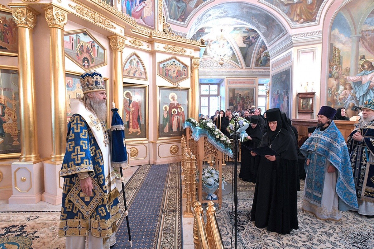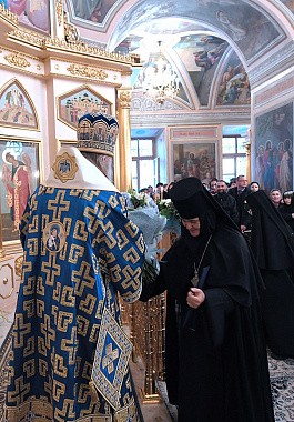 В этот день по благословению Святейшего Патриарха Московского и всея Руси Кирилла праздничную Божественную литургию в Покровском храме обители совершил председатель Синодального отдела по монастырям и монашеству, наместник Троице-Сергиевой лавры архиепископ Сергиево-Посадский Феогност.