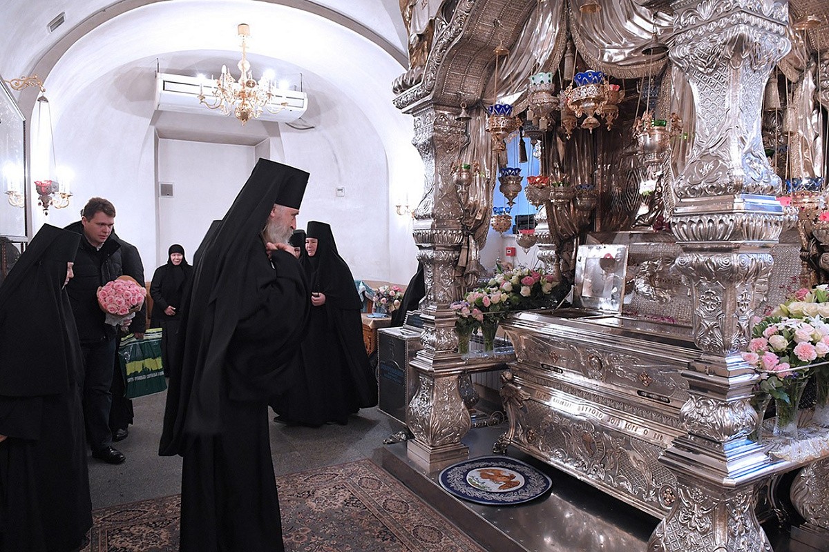 Первосвятитель Святейший Патриарх Московский и всея Руси Кирилл просил меня передать матушке игумении, сестрам, паломникам свое Патриаршее благословение и поздравление с праздником.