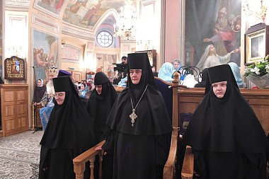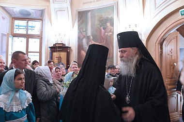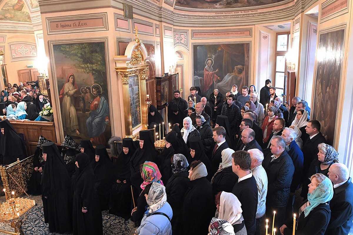 За богослужением молились: настоятельница Покровского женского монастыря игумения Феофания (Мискина) с сестрами; воспитанницы приюта Покровской обители, а также многочисленные паломники.
