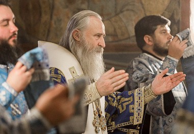 По окончании Литургии архиепископ Феогност совершил славление перед Владимирской иконой Божией Матери.