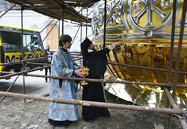 Технические специалисты, руководившие процессом установки купола и креста, обратили внимание на то, что, хотя погодные условия накануне были неблагоприятными для проведения инженерных работ – особое беспокойство вызывали порывы ветра, которые могли воспрепятствовать установке купола, – в день праздника во время богослужения погода изменилась. Поднятие и установка центрального купола и креста прошли по плану с соблюдением всех технических норм к всеобщей радости собравшихся москвичей и гостей древнего монастыря.