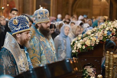 В этот день Божественную литургию в соборе Сретения Владимирской иконы Божией Матери возглавил председатель Синодального отдела по монастырям и монашеству, наместник Троице-Сергиевой лавры архиепископ Сергиево-Посадский Феогност.