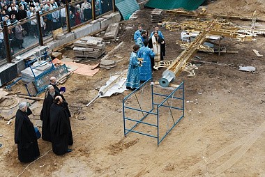 Для нас очень важно, что Промыслом Божиим именно на сегодняшний день – праздник Сретения Владимирской иконы Божией Матери – выпал особый этап строительства храма: воздвижение его куполов и святых крестов.