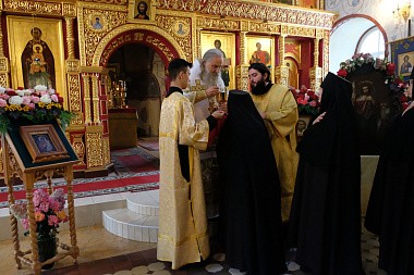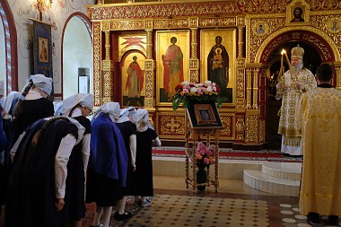 Накануне в обители было отслужено праздничное всенощное бдение с чтением на утрене акафиста празднуемому святому. Перед началом богослужения на внешней стороне центрального алтаря храма было установлено мозаичное изображение святого благоверного князя Александра Невского.