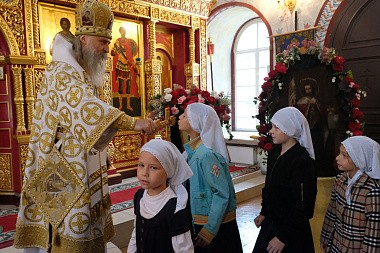 В завершение архиепископ Феогност от лица Патриарха Московского и всея Руси Кирилла поздравил иеромонаха Даниила с днем тезоименитства и вручил ему памятный дар – икону прп. Сергия Радонежского.