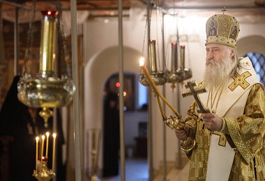 По окончании богослужения Его Высокопреосвященство совершил панихиду по приснопоминаемому Патриарху Алексию II, святым покровителем которого был свт. Алексий Московский.