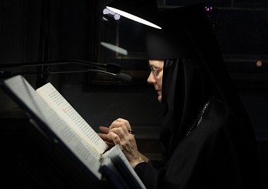За богослужением молились руководитель Правового управления Московской Патриархии, настоятельница Алексеевского монастыря игумения Ксения (Чернега) с сестрами, прихожане обители.