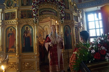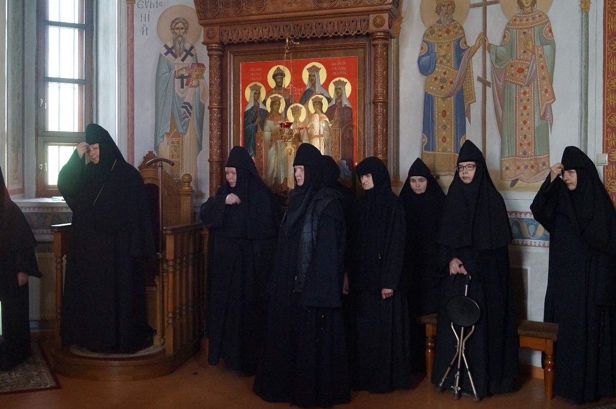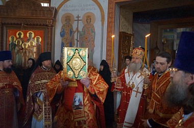 После традиционного молебна с водосвятием в честь покровителей обители была совершена праздничная Божественная литургия, за которой Его Высокопреосвященству сослужило монастырское духовенство и гости в священном сане.