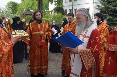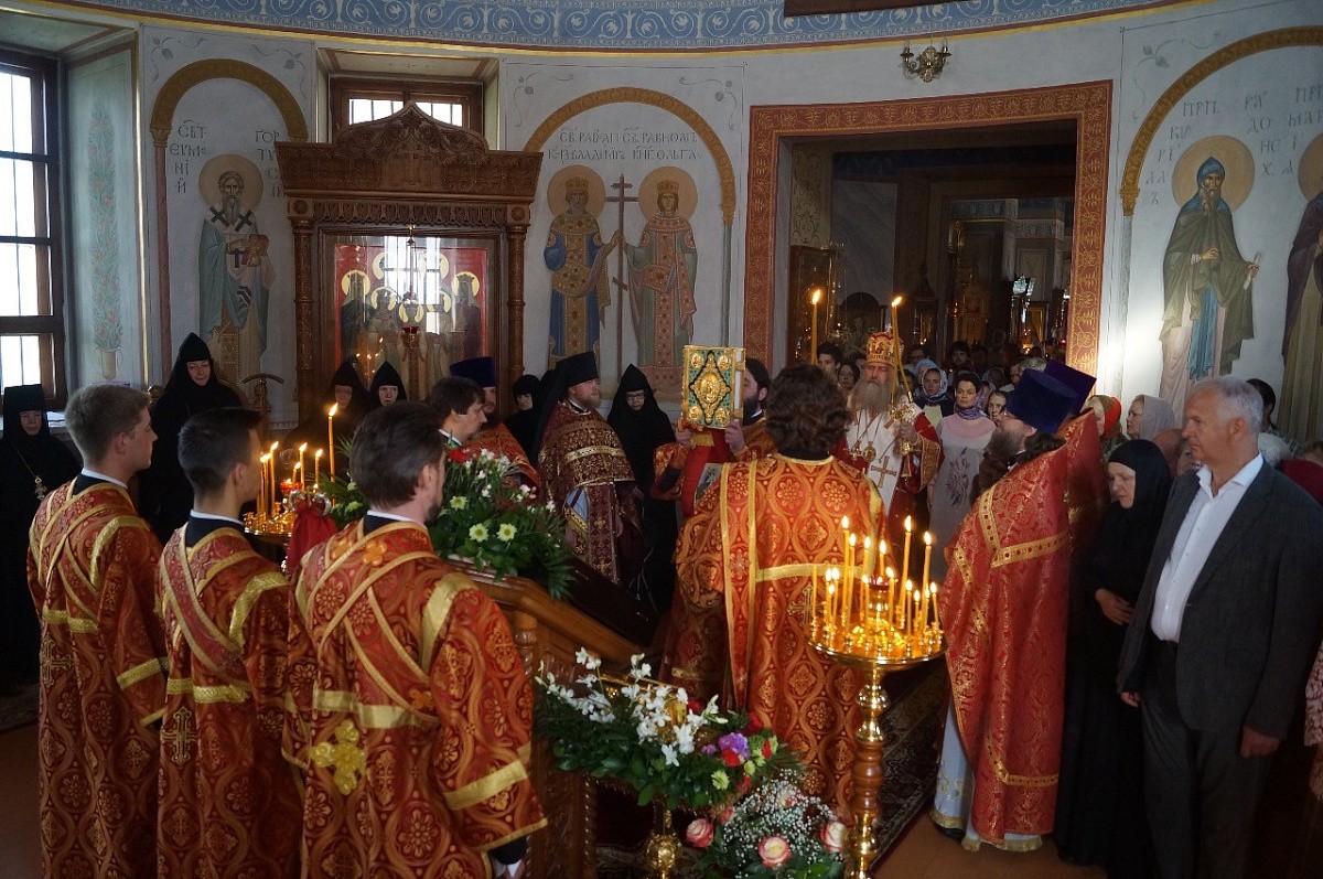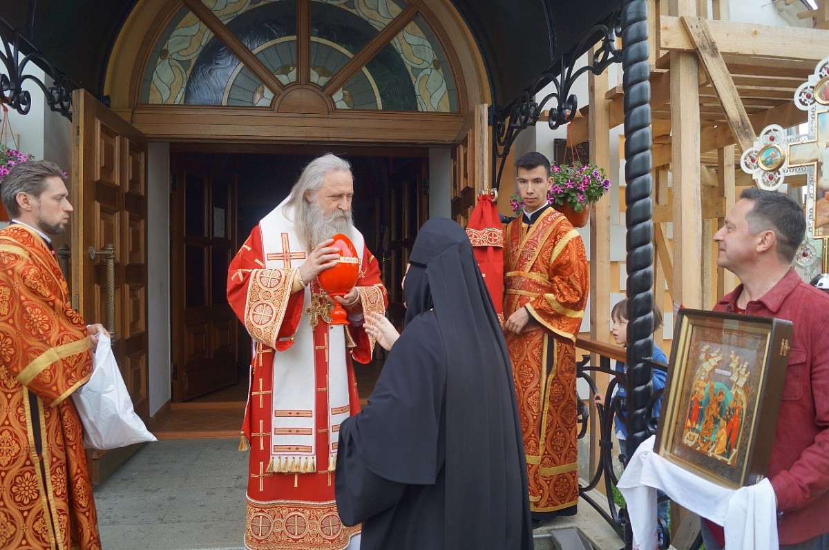 По окончании крестного хода Его Высокопреосвященство поздравил всех собравшихся с престольным праздником обители, произнес назидательное архипастырское слово в честь жертвенного подвига святых благоверных князей и страстотерпцев Бориса и Глеба и передал всем собравшимся благословение и поздравление от Святейшего Патриарха Московского и всея Руси Кирилла.