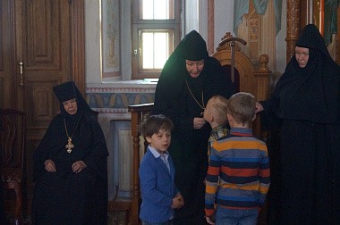 В ответном слове настоятельница монастыря игумения Мария поблагодарила владыку Феогноста за совершение праздничного богослужения, молитвы и добрые слова, а также преподнесла в дар Его Высокопреосвященству пасхальное расписанное деревянное яйцо со словами пасхального приветствия.