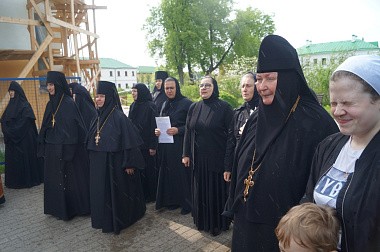 За богослужением молились настоятельница обители игумения Мария (Солодовникова), настоятельница Патриаршего подворья Пюхтицкого Успенского ставропигиального женского монастыря в г. Москве игумения Филарета (Смирнова), настоятельница Свято-Троицкого Александро-Невского ставропигиального женского монастыря с. Акатова игумения Антония (Минина), а также насельницы, прихожане, паломники и гости обители.