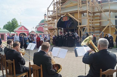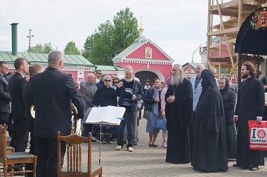 По целовании креста на выходе из храма собравшихся ждало монастырское угощение и праздничный оркестровый музыкальный концерт.