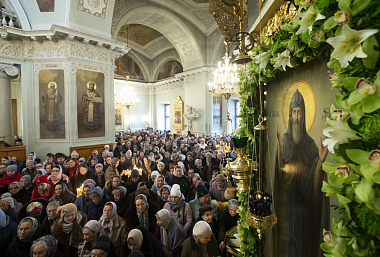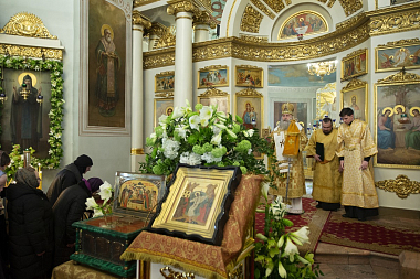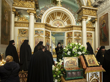 По окончании Литургии архиепископ Феогност совершил славление празднуемому святому и прочитал молитву перед чтимой иконой и ковчегом с частицей мощей благоверного князя Даниила Московского, изнесенными в центр храма.