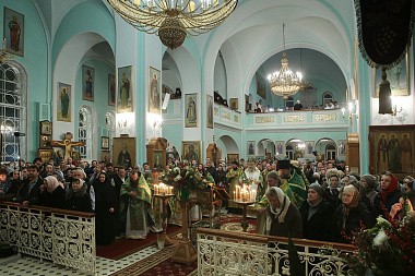 По окончании богослужения владыка Феогност вознес молитву святому праведному Иоанну Кронштадтскому и обратился к собравшимся с архипастырским словом: