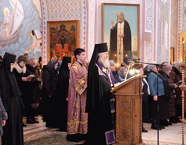 21 февраля 2018 года, в среду первой седмицы Великого поста, великое повечерие с чтением Великого покаянного канона прп. Андрея Критского в Покровском Хотькове ставропигиальном женском монастыре возглавил наместник Свято-Троицкой Сергиевой лавры, председатель Синодального отдела по монастырям и монашеству архиепископ Сергиево-Посадский Феогност.