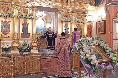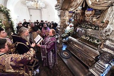 Затем в Покровском храме обители архиепископ Феогност вознес молитву у раки с мощами блаженной старицы Матроны.