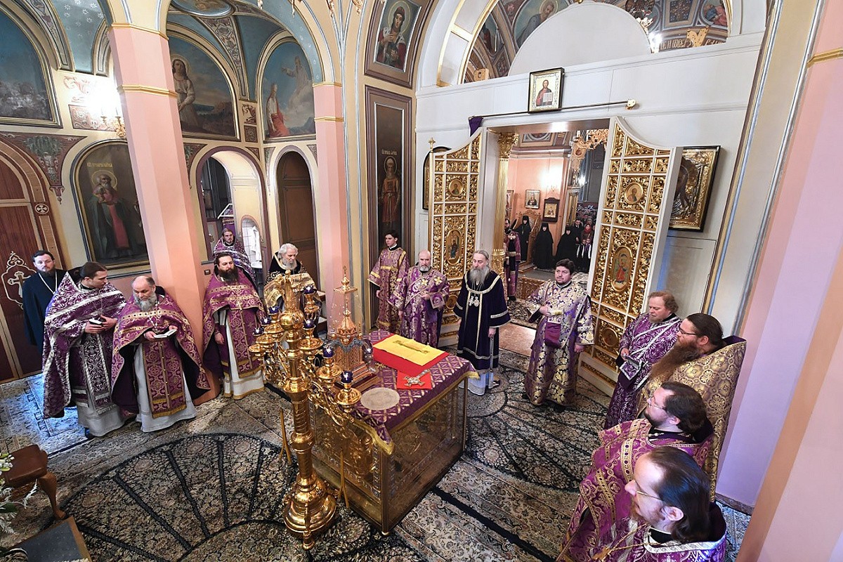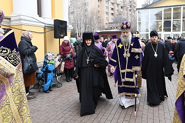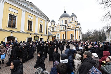 8 марта 2017 года, в праздник обретения мощей святой праведной блаженной Матроны Московской, по благословению Святейшего Патриарха Московского и всея Руси Кирилла Литургию Преждеосвященных Даров в Воскресенском храме Покровского ставропигиального женского монастыря Москвы совершил председатель Синодального отдела по монастырям и монашеству, наместник Троице-Сергиевой лавры архиепископ Сергиево-Посадский Феогност.