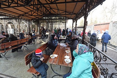 Для всех паломников был организован благотворительный обед и чай с монастырской выпечкой.
