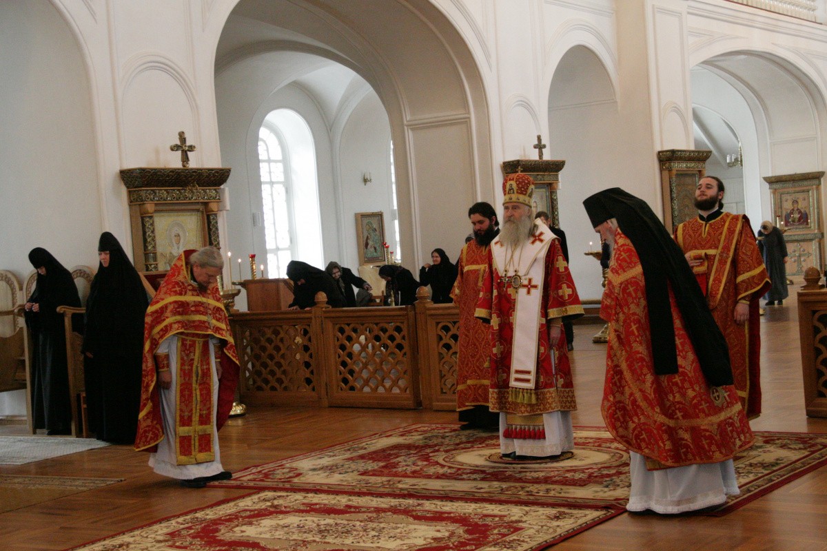 В этот день пасхальную Божественную литургию в Казанском соборе обители совершил председатель Синодального отдела по делам монастырей и монашеству архиепископ Каширский Феогност.