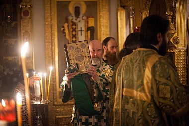 Накануне в Успенском соборе состоялось всенощное бдение, которое возглавил наместник Троице-Сергиевой лавры, председатель Синодального отдела по монастырям и монашеству архиепископ Сергиево-Посадский Феогност.