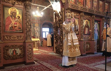 Праздничную Божественную литургию возглавил председатель Синодального отдела по монастырям и монашеству архиепископ Сергиево-Посадский Феогност.