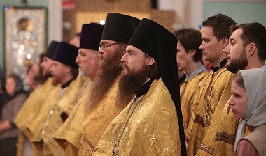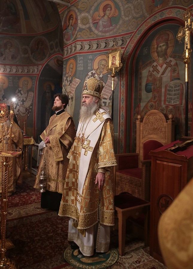 По завершении богослужения в Сергиевском храме у иконы святителя Петра было совершено акафистное пение святителю.