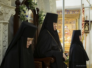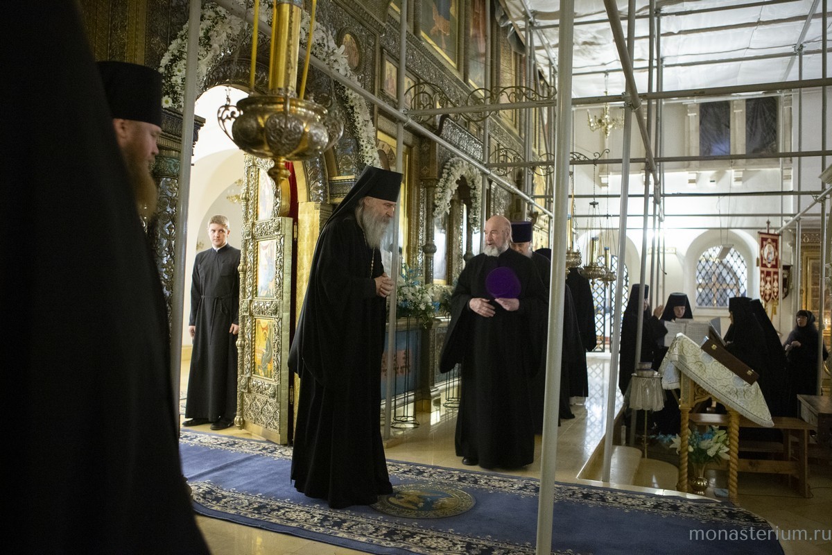 Позднюю Литургию в монастырском соборе Рождества Богородицы возглавил председатель Синодального отдела по монастырям и монашеству, наместник Свято-Троицкой Сергиевой лавры архиепископ Сергиево-Посадский Феогност.