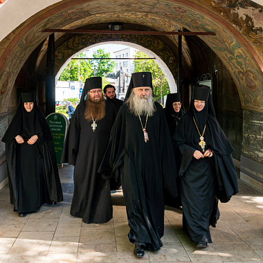 Его Высокопреосвященству сослужили: заместитель председателя Синодального отдела по монастырям и монашеству, настоятель Московского подворья Свято-Троицкой Сергиевой лавры архимандрит Стефан (Тараканов); наместник Николо-Угрешского ставропигиального мужского монастыря игумен Варфоломей (Петров); настоятель храма Живоначальной Троицы на Грязех протоиерей Иоанн Каледа и духовенство обители.