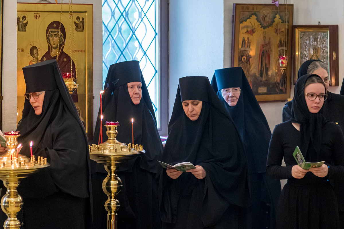 За Литургией молились заместитель председателя Синодального отдела по монастырям и монашеству, настоятельница Зачатьевского ставропигиального женского монастыря игумения Иулиания (Каледа) с сестрами, прихожане и гости обители.