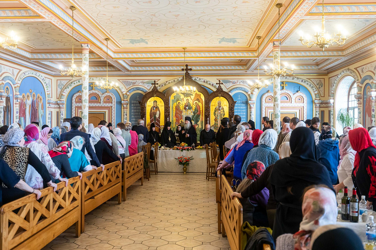 В завершение участники богослужения были приглашены на трапезу, во время которой гости поздравляли игумению Иулианию с праздником, выражая свое восхищение чудесным восстановлением обители и желая дальнейшего благоукрашения и храмов, и, главное, наших душ.