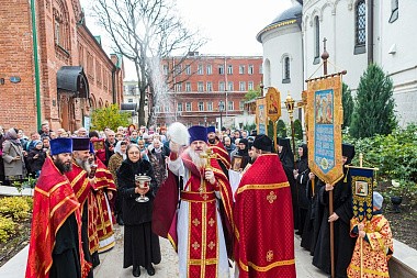 По окончании поздней Божественной литургии вокруг монастырского собора состоялся праздничный крестный ход.
