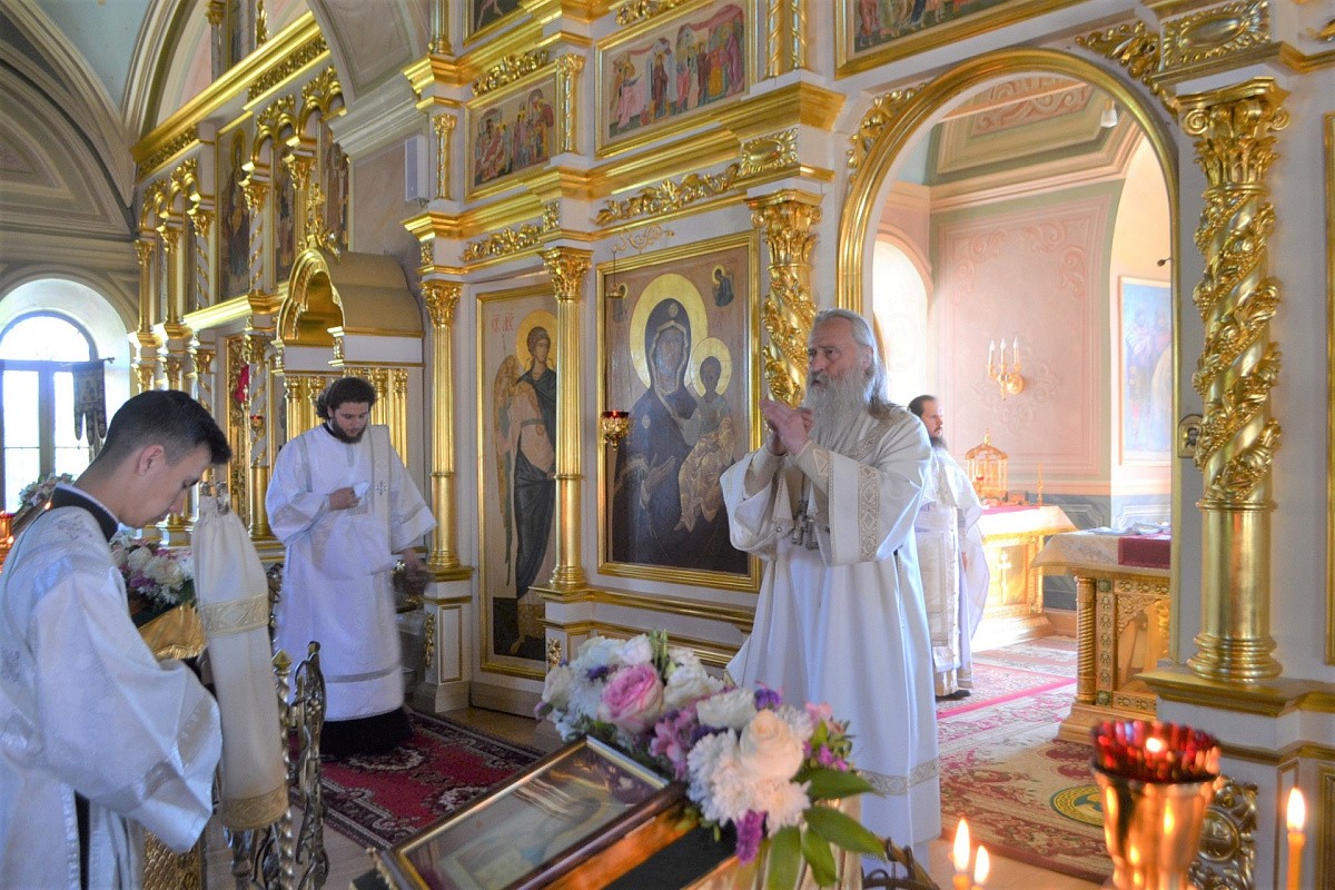 За Божественной литургией Его Высокопреосвященству сослужили клирики обители.