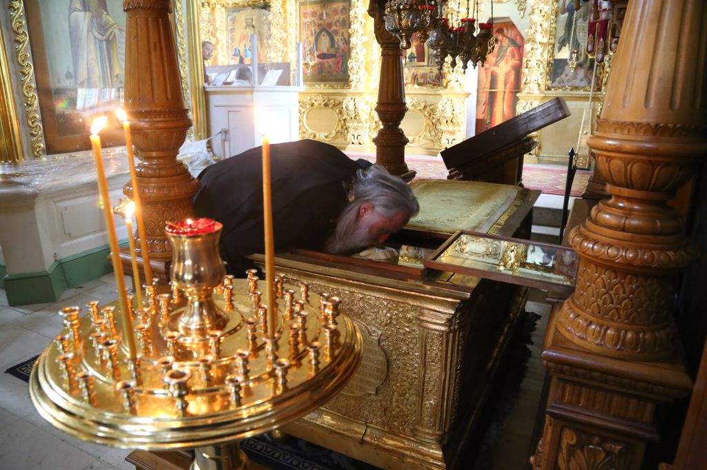 Его Высокопреосвященство совершил Божественную литургию в Успенском соборе обители.