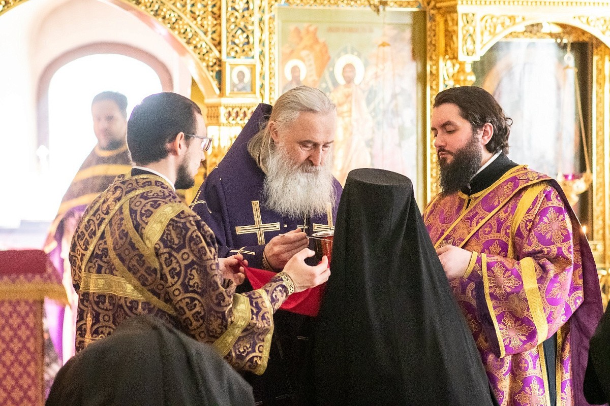 В монастырском соборе в приделе Казанской иконы Божией Матери состоялись праздничные богослужения, велись прямые трансляции: накануне – Великое повечерие и утреня, в сам день престольного праздника – Литургия Преждеосвященных Даров.