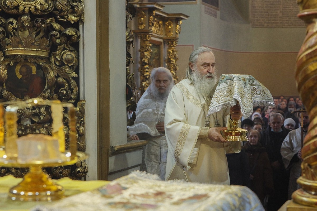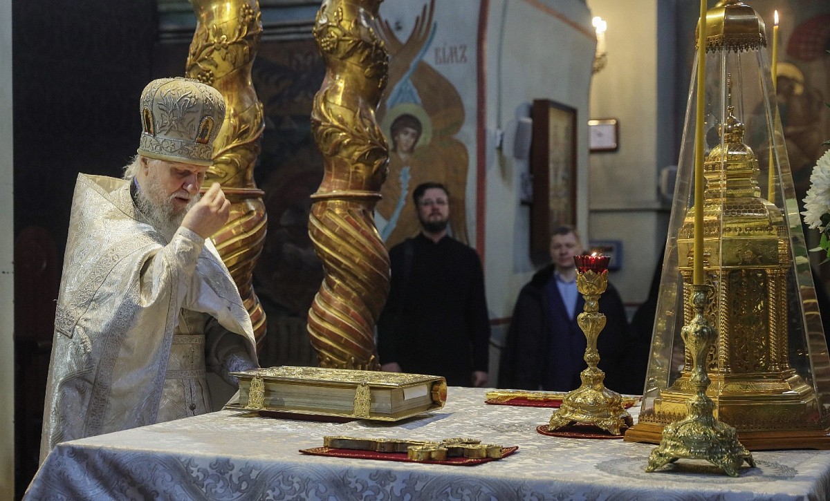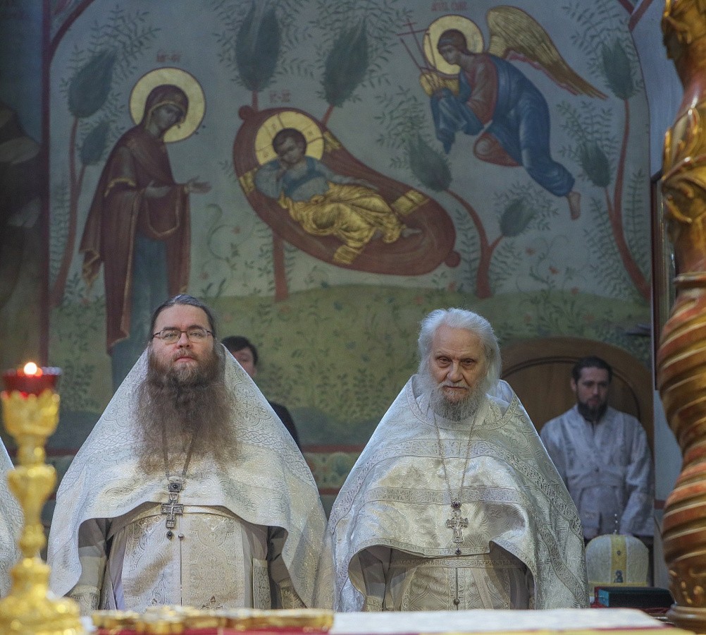 Его Высокопреосвященству сослужили: секретарь Патриарха Московского и всея Руси по г. Москве протопресвитер Владимир Диваков; заместитель председателя Синодального отдела по монастырям и монашеству архимандрит Стефан (Тараканов); наместник Саввино-Сторожевского ставропигиального мужского монастыря архимандрит Павел (Кривоногов); благочинный Патриарших подворий и ставропигиальных приходов вне города Москвы настоятель храма прп. Сергия Радонежского на Рязанке протоиерей Виктор Сандар; братия Донской обители в священном сане.