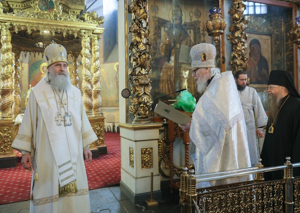 По окончании Литургии протопресвитер Владимир Диваков огласил поздравительный адрес Святейшего Патриарха Московского и всея Руси Кирилла, направленный архиепископу Феогносту по случаю дня его тезоименитства: