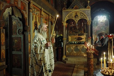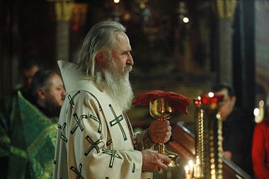 По заамвонной молитве владыка прочитал молитву святому преподобному Савве Сторожевскому.