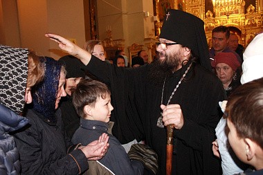 По окончании великого повечерия владыка Матфей преподал свое архипастырское благословение сестрам и прихожанам обители.