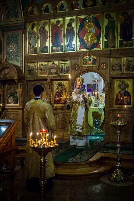 Его Высокопреосвященству сослужили и.о. начальника Московского подворья игумен Иосиф (Крюков) и клирики храма.