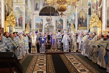 Его Блаженству сослужили: митрополит Вышгородский и Чернобыльский Павел, митрополит Ровенский и Острожский Варфоломей, архиепископ Сергиево-Посадский Феогност, архиепископ Городницкий Александр, епископ Вознесенский и Первомайский Алексий, епископ Шепетовский и Славутский Евсевий и духовенство монастыря.