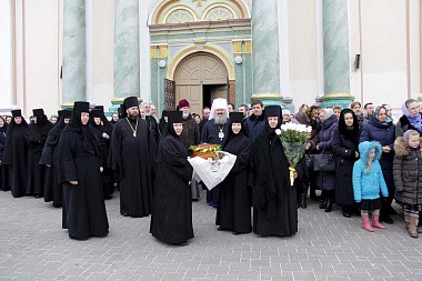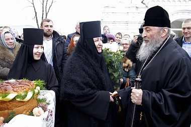 По окончании Литургии Предстоятель Украинской Православной Церкви отслужил праздничный молебен перед чудотворной иконой Божией Матери «Споручница грешных», в заключение которого поблагодарил всех прибывших на торжество архипастырей, игумению Рафаилу (Хильчук) и сестер обители за совместные молитвы и поздравил всех верующих с праздником.