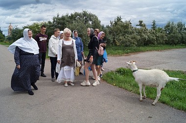Настоятельница обители игумения Мария (Солодовникова) провела паломников по территории обители, рассказала об истории монастыря и жизни первых основательниц и насельниц обители.